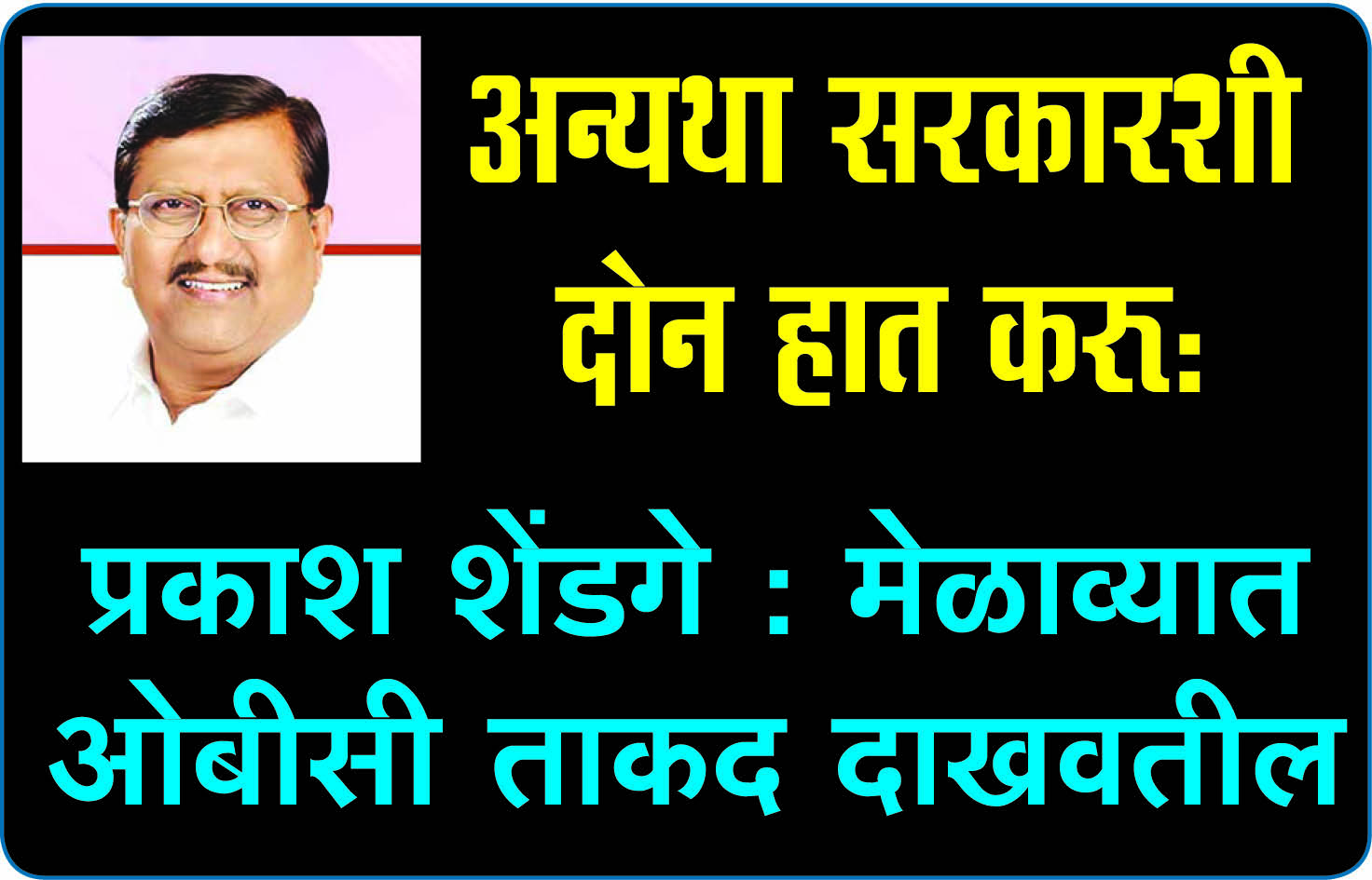 obc resarvation : अन्यथा सरकारशी दोन हात करू: प्रकाश शेंडगे, मेळाव्यात ओबीसी ताकद दाखवतील August 9, 2024 No Comments