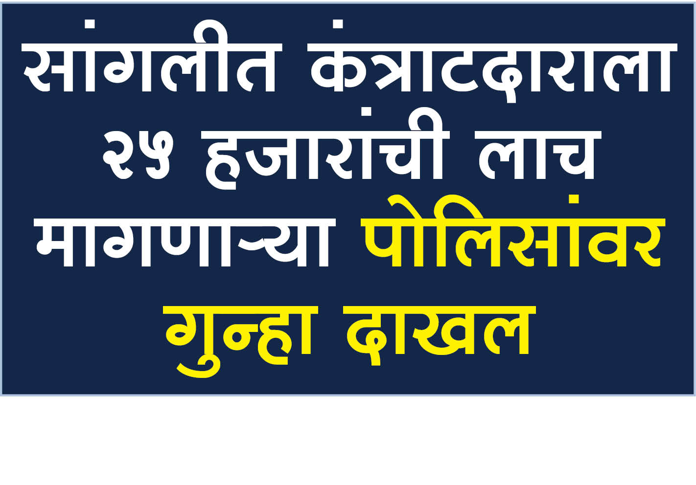 sangli crime news : सांगलीत कंत्राटदाराला 25 हजारांची लाच मागणार्या पोलिसांवर गुन्हा दाखल. December 30, 2024 No Comments