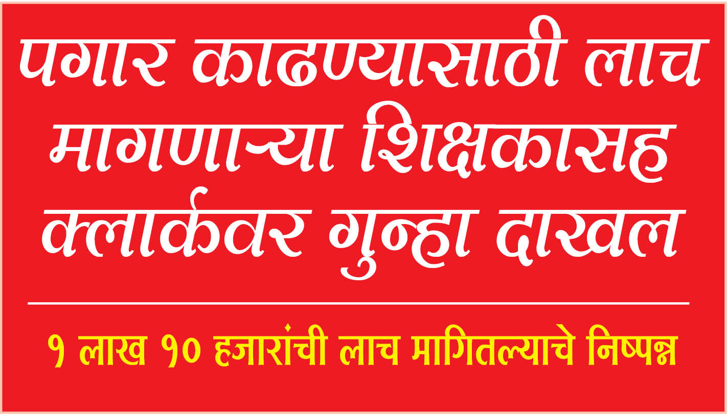 sangli crime news : पगार काढण्यासाठी लाच मागणार्या शिक्षकासह क्लार्कवर गुन्हा दाखल : 1 लाख 10 हजारांची लाच मागितल्याचे निष्पन्न. December 30, 2024 No Comments