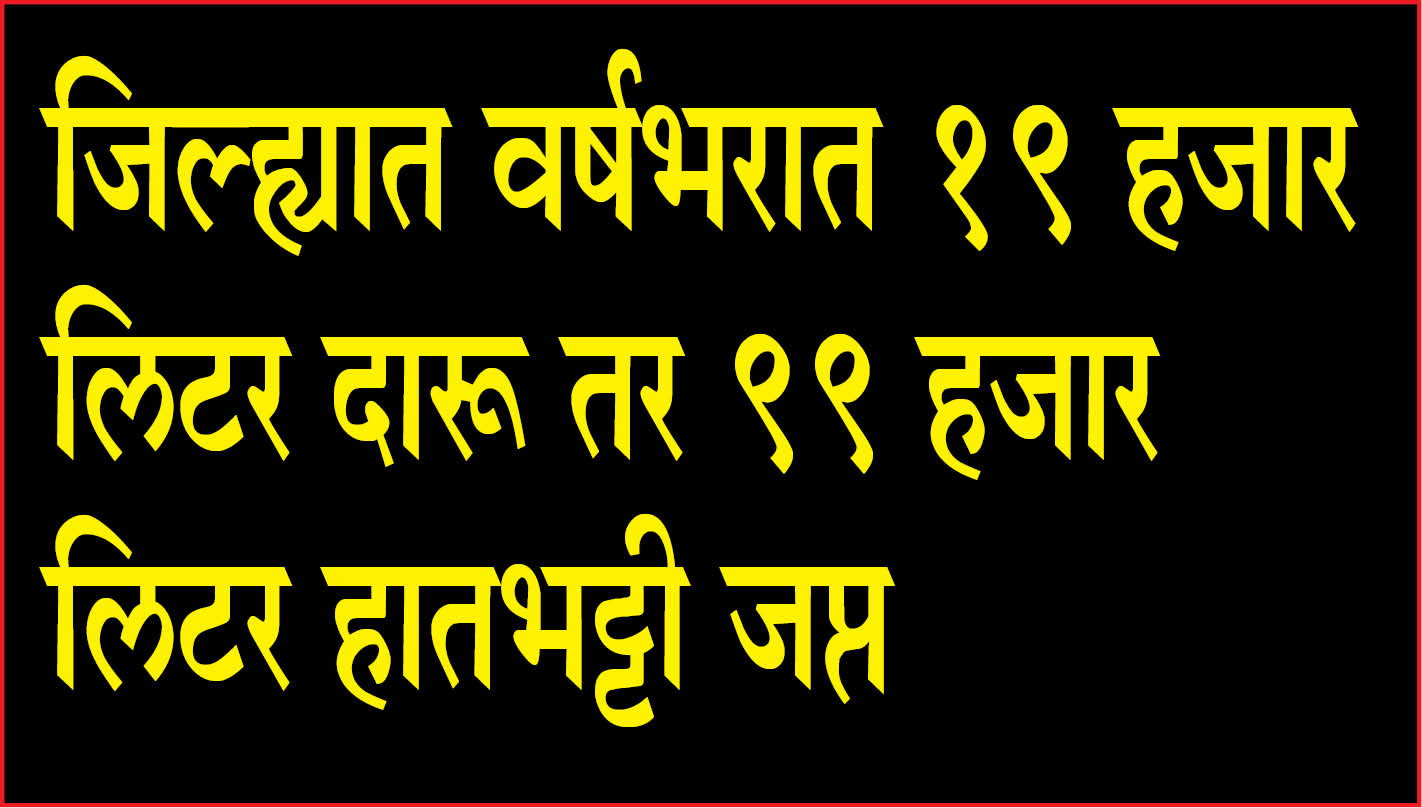 sangli crime news : जिल्ह्यात वर्षभरात 19 हजार लिटर दारू तर 99 हजार लिटर हातभट्टी जप्त December 31, 2024 No Comments