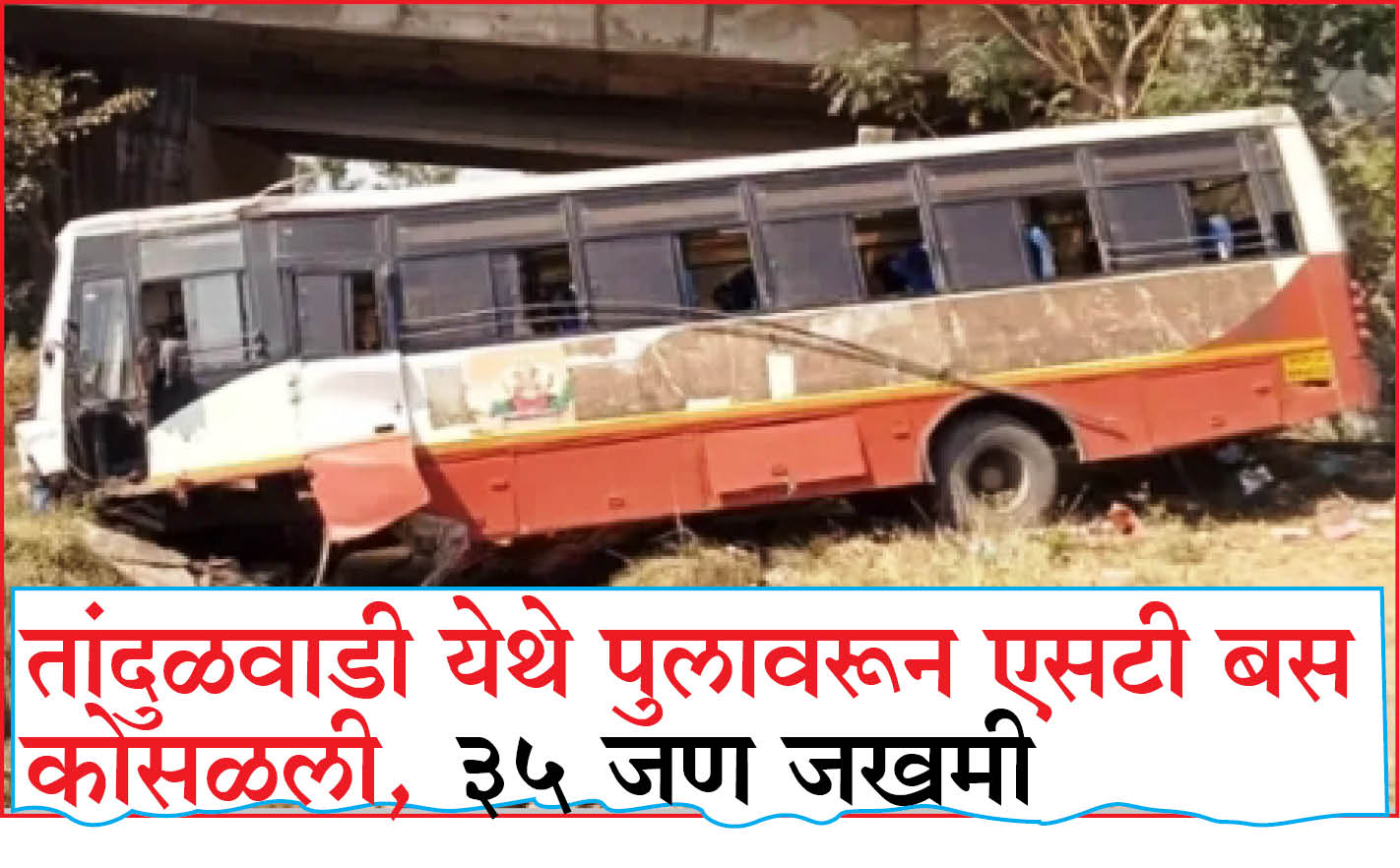 sangli islampur news : तांदुळवाडी येथे पुलावरून एसटी बस कोसळली, 35 जण जखमी January 27, 2025 No Comments
