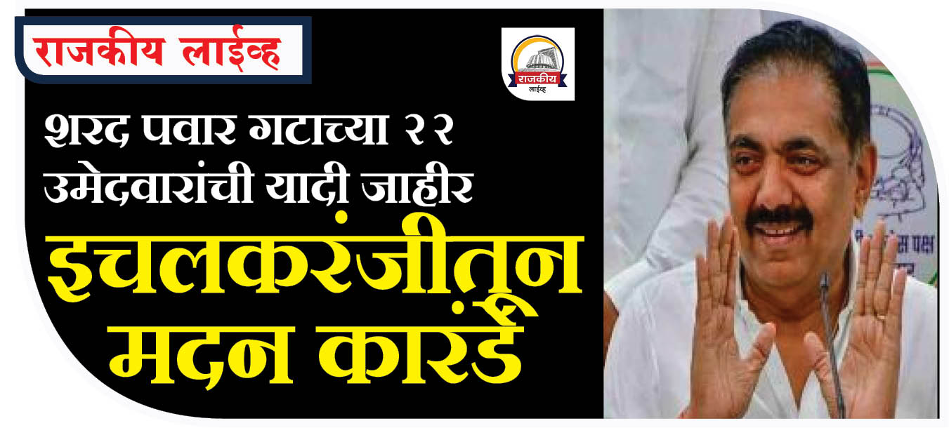 ncp vidhansabha news : शरद पवार गटाच्या 22 उमेदवारांची यादी जाहीर; इचलकरंजीतून मदन कारंडे October 26, 2024 No Comments