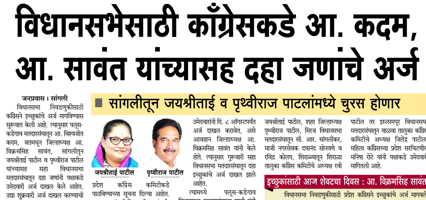 sangli vidhansabha 2024 : पृथ्वीराज, जयश्रीताई पाटलांच्या रस्सीखेचात मतविभागणीचा धोका August 10, 2024 No Comments