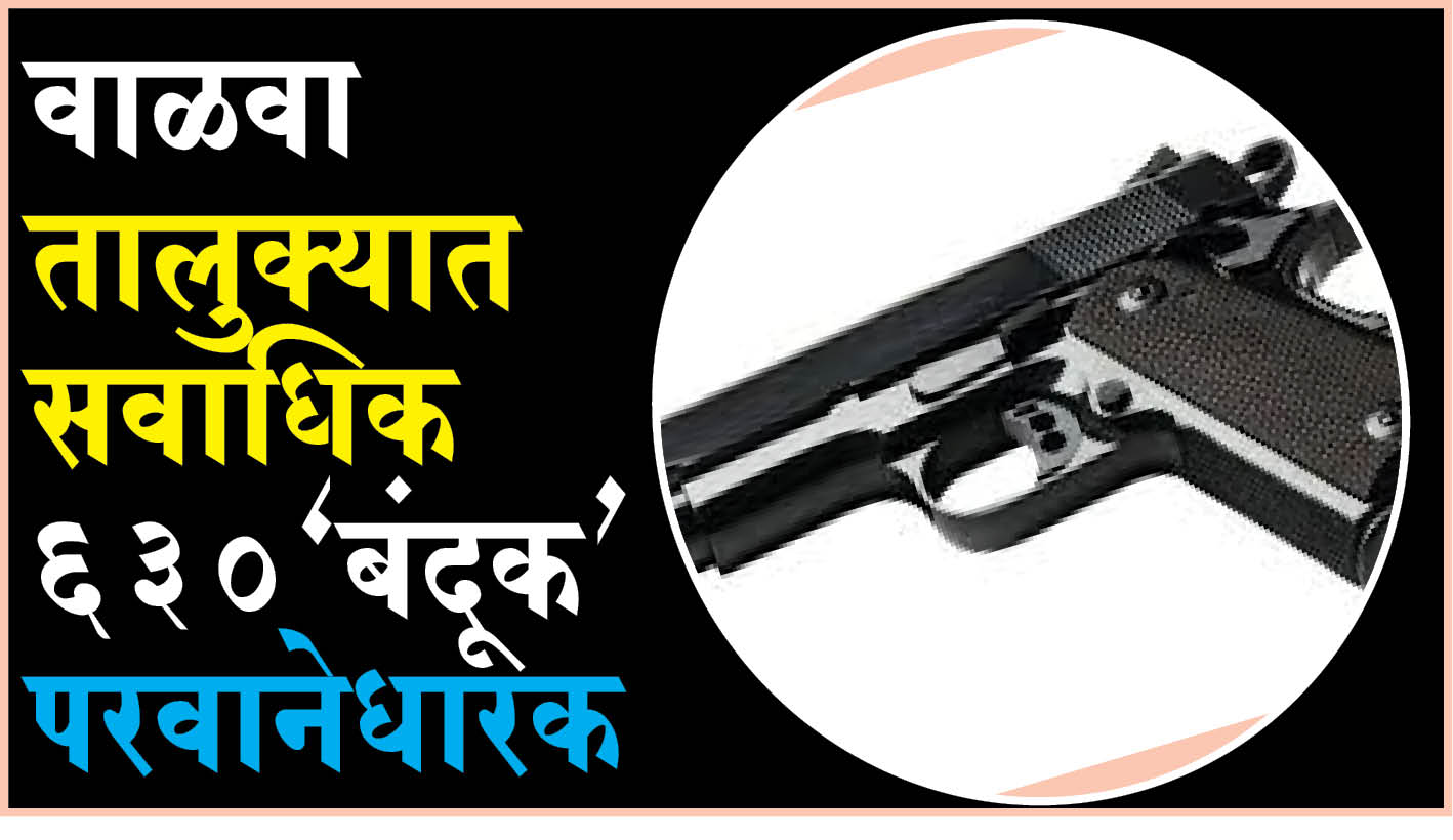 islampur news : वाळवा तालुक्यात सवाधिक 630‘बंदूक’ परवानेधारक देशात परवान्याशिवाय बंदूक वापरणे गुन्हा आहे. एखाद्या व्यक्तीने विनापरवाना शस्त्र बाळगले तर त्याच्यावर कायदेशीर कारवाई होते. यामुळे देशात कोणीही विनापरवाना शस्त्र बाळगू शकत नाही. अशा परिस्थितीत अनेकांनी ‘आत्मसंरक्षणा’च्या नावाखाली बंदुकीचा परवाना काढला आहे. सांगली जिल्ह्यामध्ये ही संख्या 2 हजार 548 इतकी आहे. यामध्ये वाळवा तालुक्यातील बंदूकधार्यांची संख्या तब्बल 630 इतकी आहे.