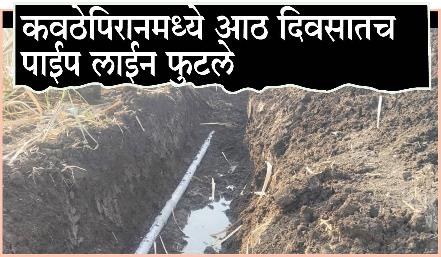 kavtepiran news : कवठेपिरानमध्ये आठ दिवसातच पाईप लाईन फुटले