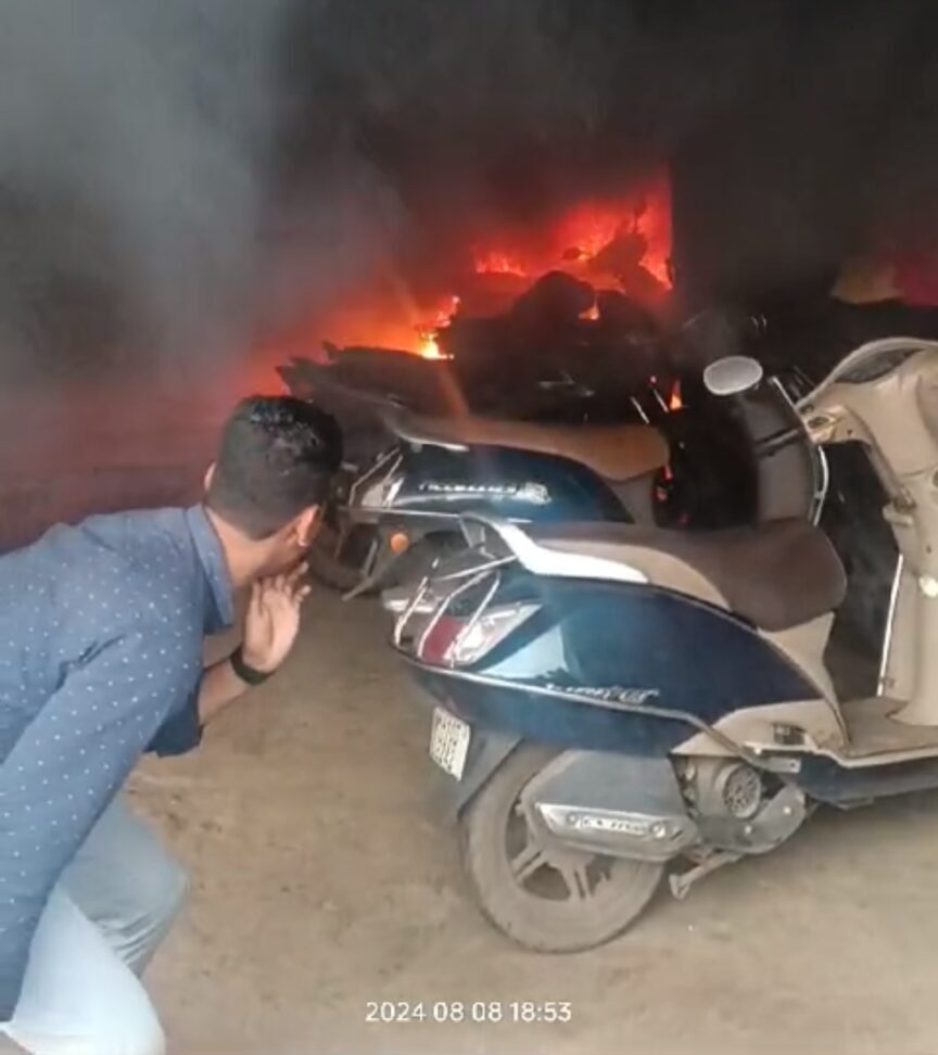 यावेळी दोन दुचाकी जळल्या. इतर वाहनांना आगीपासून वाचविण्यात यश आले. पोलिस निरीक्षक संजय मोरे व त्यांच्या पथकाने गर्दी हटविली.