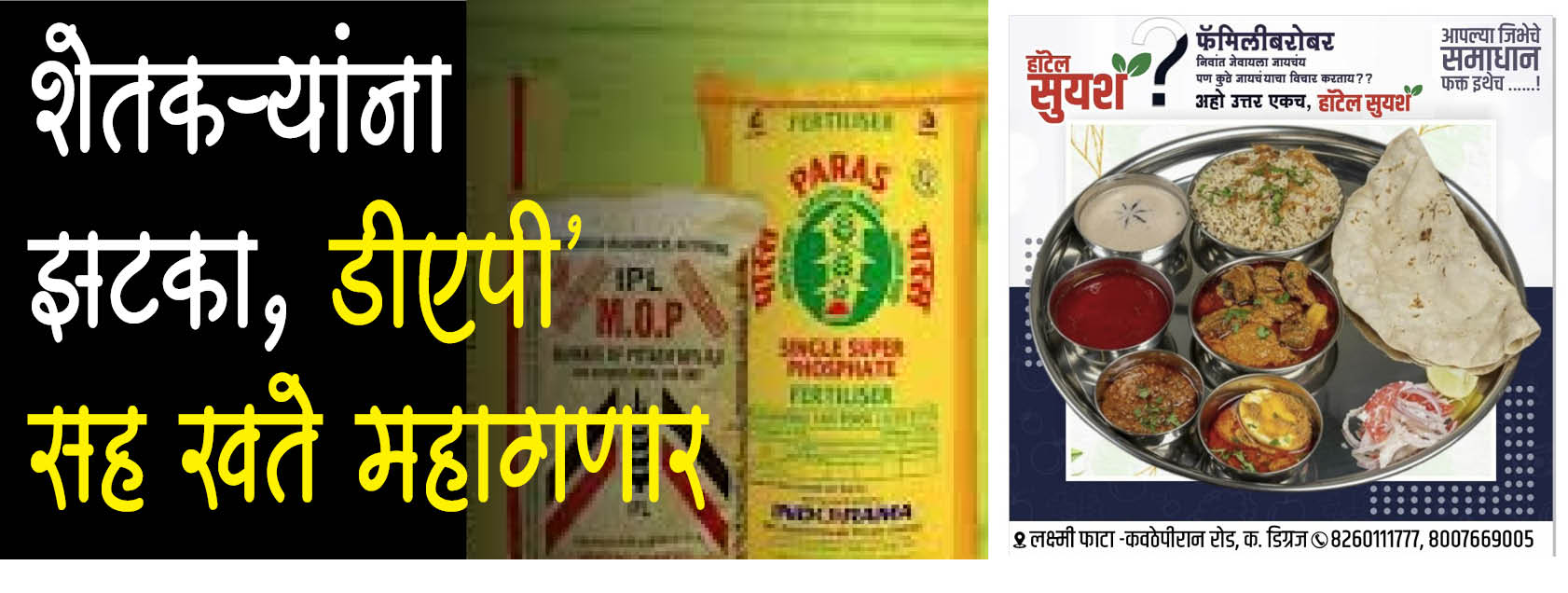 sangli local news : शेतकर्‍यांना झटका, ‘डीएपी’सह खते महागणार : शेतमालाच्या उत्पादन आणि खर्चाचा ताळमेळ घालताना कसरत करावी लागत असताना नवीन वर्षाच्या सुरुवातीला शेतकर्‍यांना झटका बसणार आहे. रासायनिक खत उत्पादक कंपन्यांना खतांचे दर वाढविण्यास सरकारने मंजुरी दिली आहे. एक जानेवारीपासून शेतकर्‍यांना ’डीएपी’, 10ः26ः26, 13ः32ः16 या खतांची गोणी सरासरी 250 रुपयांनी महागणार आहे. त्यामुळे शेतकर्‍यांना नवीन वर्षापासून जादा दराने खतांची खरेदी करावी लागणार असल्याचे स्पष्ट झाले.